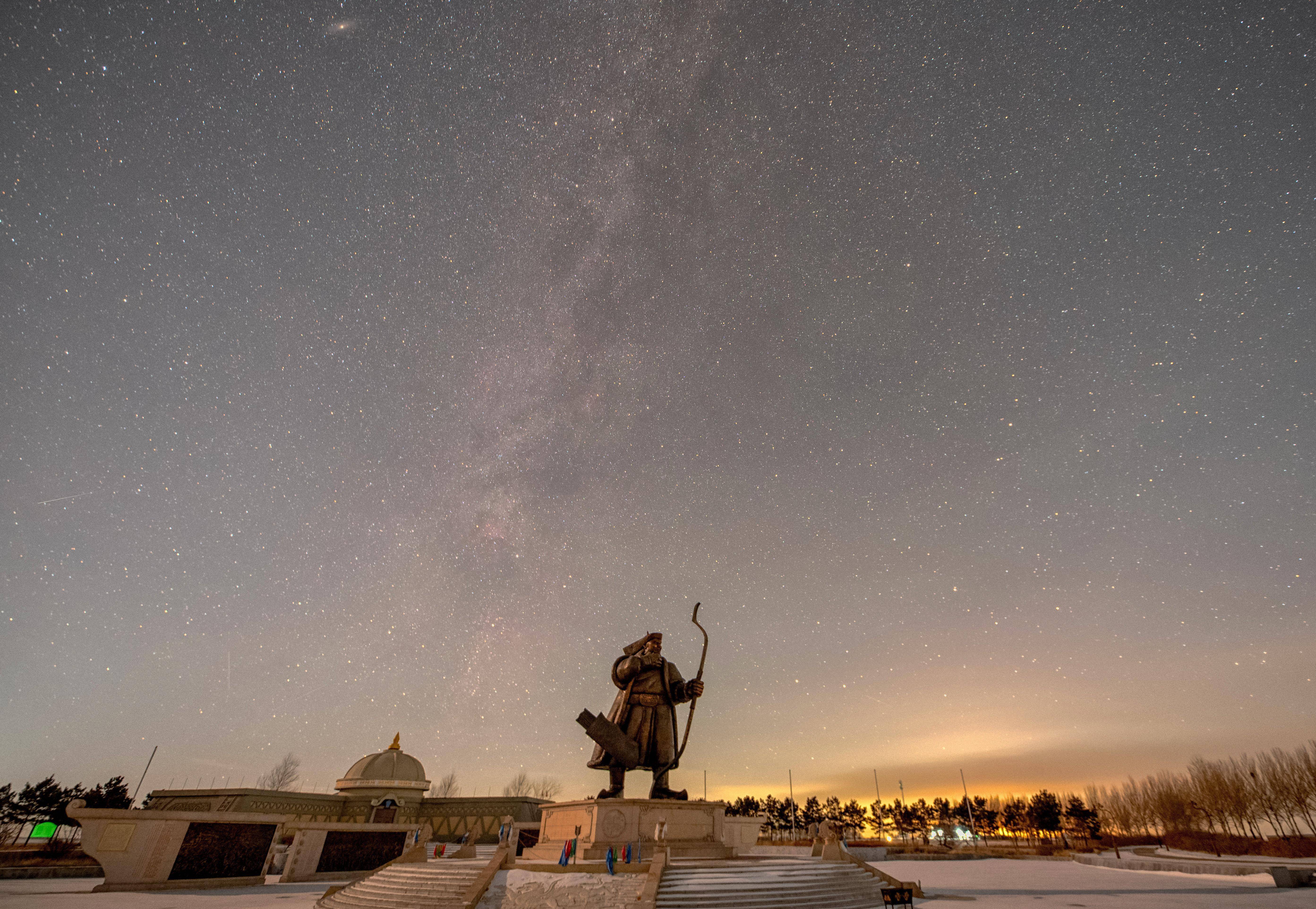 1月23日在黑龙江省大庆市杜尔伯特蒙古族自治县阿木塔旅游度假区拍摄的猎户座(堆栈合成相片)。新华社发(刘崴摄)偶现的北极光