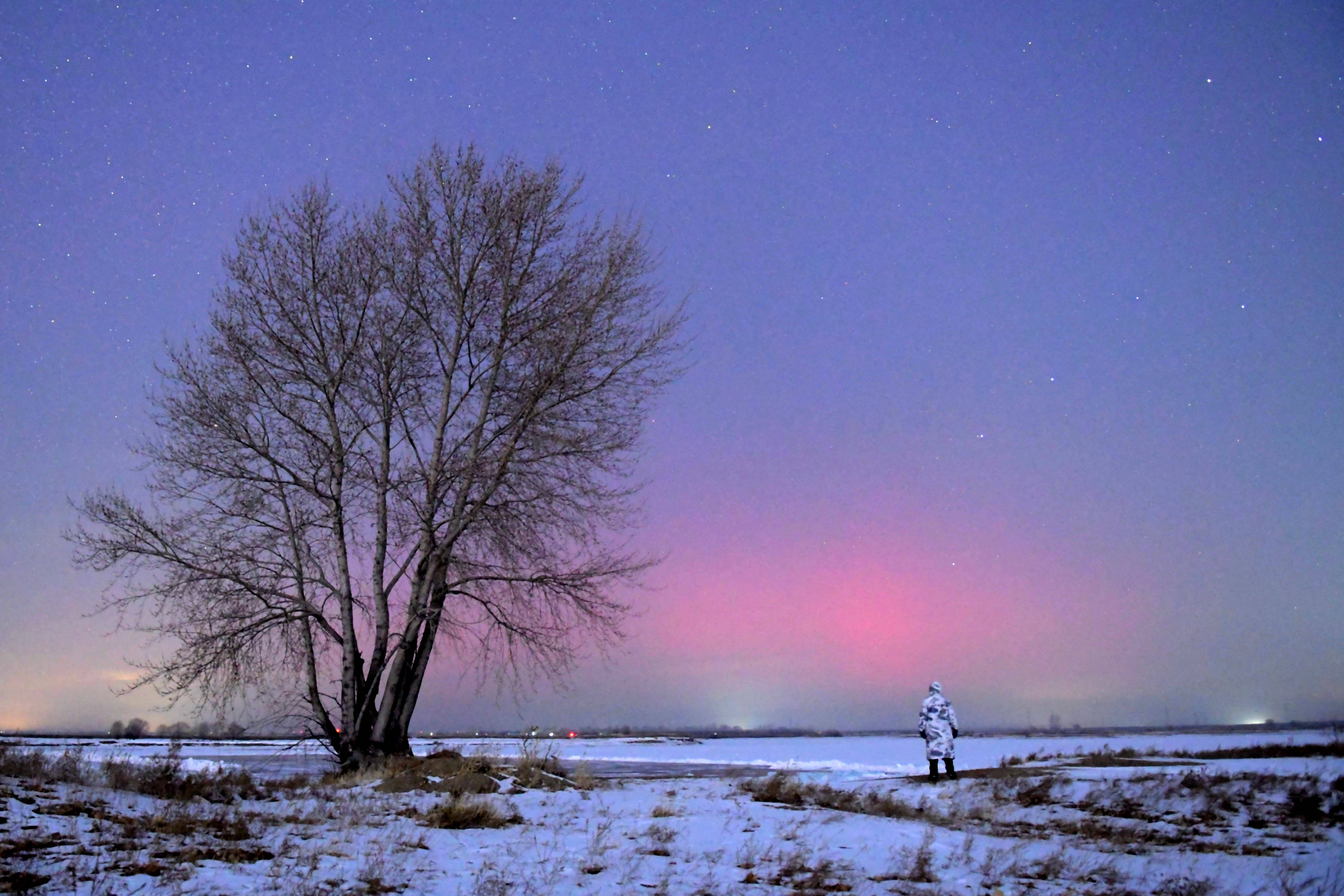 1月20日,在王人王人哈尔市嫩江江畔拍摄的极光。新华社发(王勇刚摄)闲雅星空