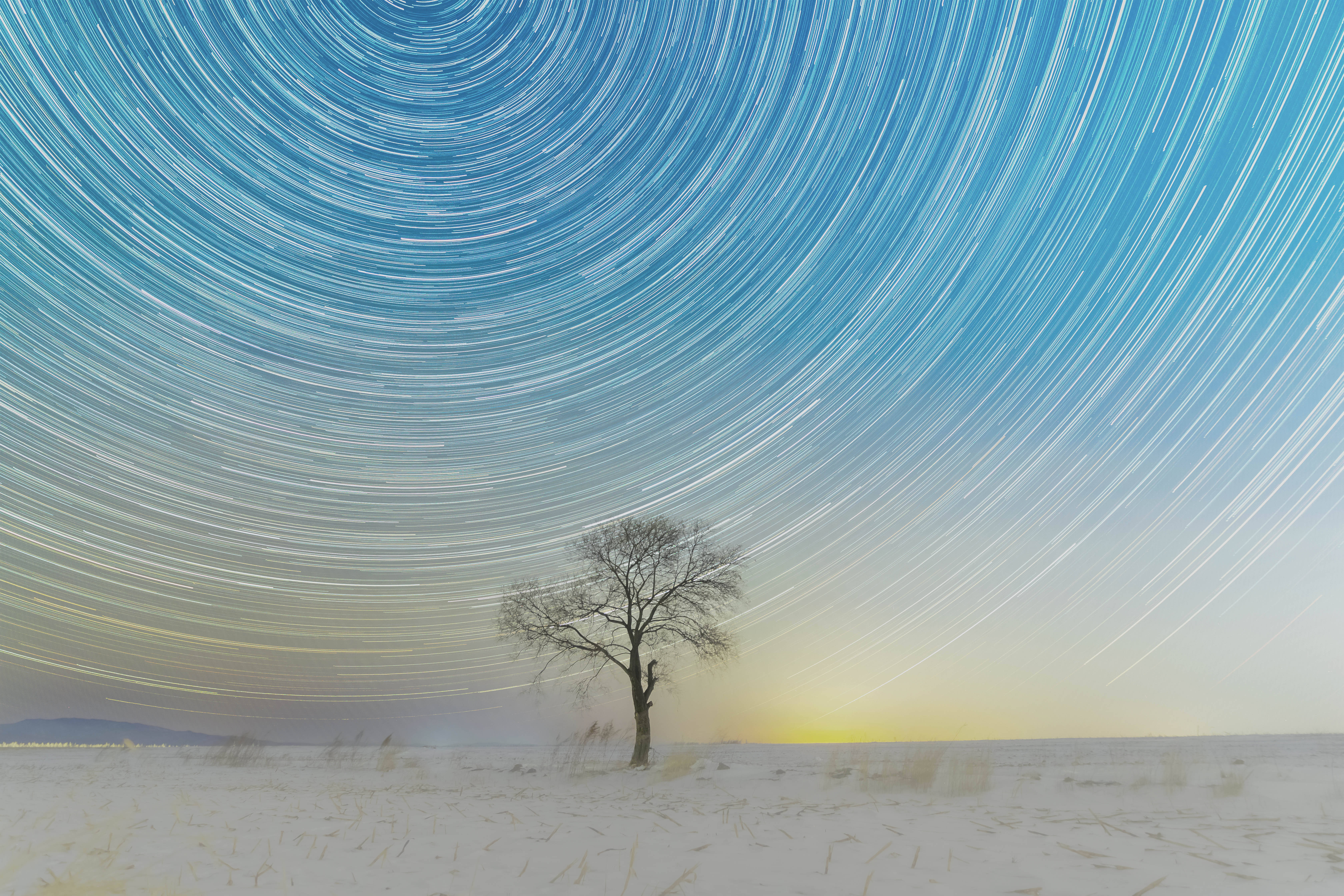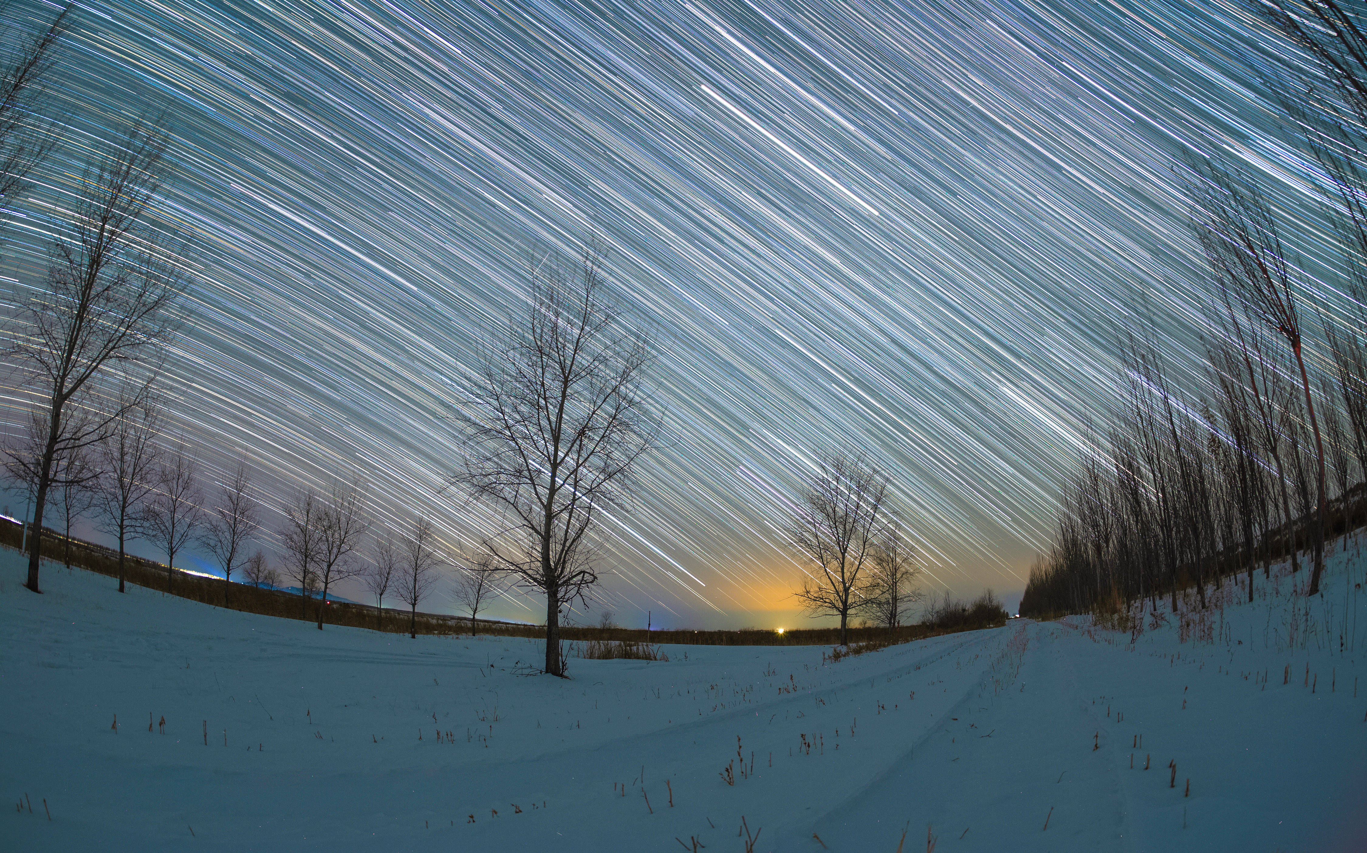 1月26日在黑龙江省富锦市拍摄的冬季星空(堆栈合成相片)。新华社发(庚喜庆摄)