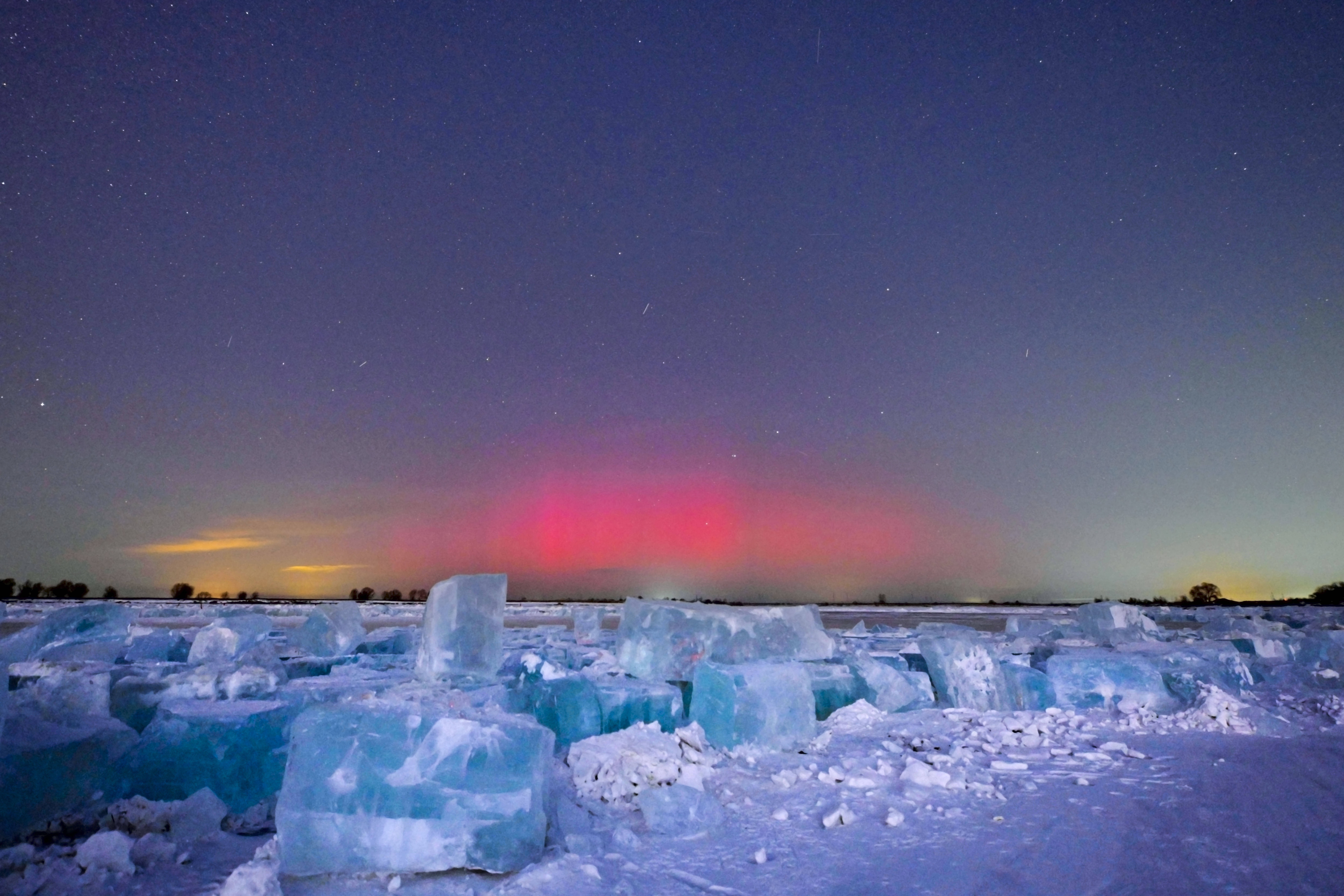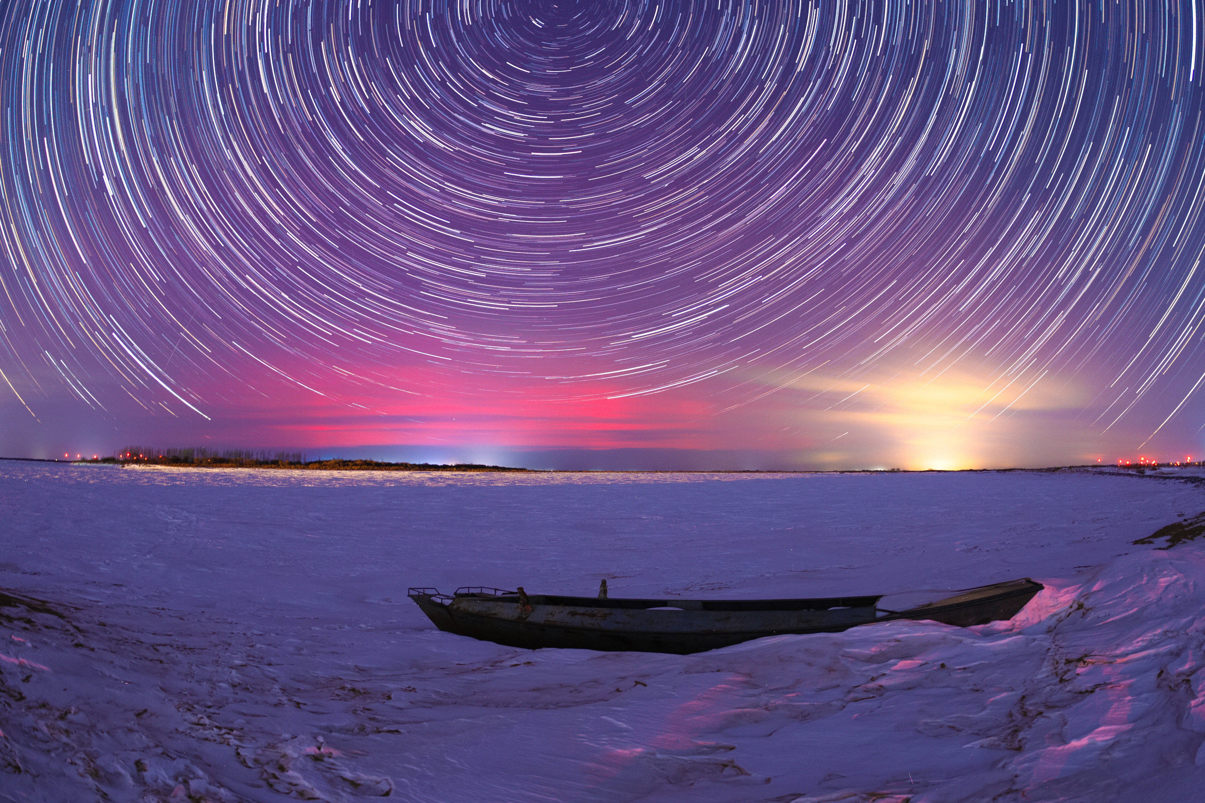 1月20日在黑龙江省富锦市拍摄的极光(堆栈合成相片)。新华社发(曲玉宝摄)