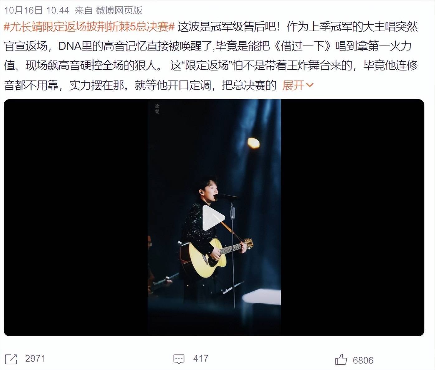 每到总决赛,节目组齐会邀请嘉宾参与录制,而在本季节目中,哥哥们可以自行邀请嘉宾,看到这么的情况,大部分网友齐但愿好意思瞻念老咖可以邀请陈楚生能够陆虎,最佳他们可以齐来,会给《饱经风雨5》带来极高的热度和眷注度,毕竟再职业男团是最佳的群像。